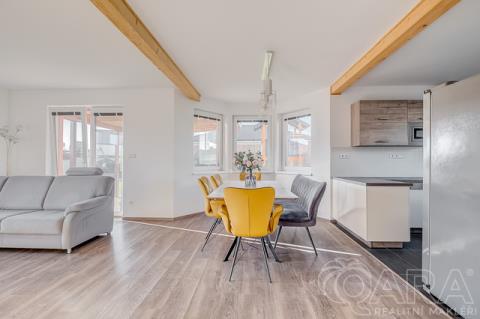 V exkluzivním zastoupení majitele Vám nabízíme prodej útulného rodinného domu o dispozicích 7+2 s balkonem o celkové užitné ploše 174 m2, který se nachází ve vyhledávané rezidenční části obce Nová Ves pod Pleší - Včelník. Jedná se o kvalitní dřevostavbu od renomované společnosti WOOD SYSTEM, dům byl kolaudován v r. 2014 s pozdější výstavbou garáže a skladů. Jeho největší předností je jeho dispoziční řešení - dům má dva samostatné vchody a v přízemí lze dva pokoje s příslušenstvím využít pro individuální potřeby nových majitelů, ať už pro podnikání (kancelář, provozování služeb - kosmetický salón, kadeřnictví, pedikúra apod.) nebo pro vícegenerační bydlení.
