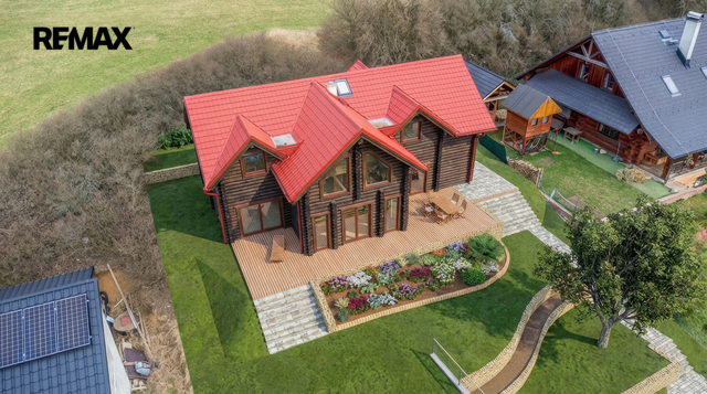 Srub nad údolím Nového Knína Hledáte domov, který voní dřevem? Nabízíme unikátní srub z poctivých masivních kuláčů v klidné slepé ulici Reinišova. Dům stojí v jiho-východním svahu s panoramatickým výhledem na obec N. Knín a malebné údolí potoka Kocáby. Vdechněte srubu vlastní duši Stavba se nachází ve fázi uzavřené hrubé stavby. Konstrukční srdce domu je hotové, což vám dává jedinečnou příležitost soustředit se na to nejdůležitější: výběr materiálů, barev a technologií, které udělají z tohoto srubu váš skutečný domov. Od podlah až po poslední detail v koupelně bude vše přesně podle vašich představ. Máte šanci vtisknout domu svůj osobitý rukopis. Technické parametry a dispozice (5+kk) • Užitná plocha: 203 m². • Pozemek: 746 m² (zastavěná plocha domu 130 m² ). • Přízemí (1. NP): Dominantní obývací pokoj (31,8 m²) s vysokým stropem a výhledem do údolí, jídelna (11,8 m²), kuchyně (11,4 m²), pokoj pro hosty/pracovna (9,5 m²), technická místnost (8,6 m²) a zázemí. • Podkroví (2. NP): Ložnice (9,6 m²) s vlastní koupelnou a šatnou, dva dětské pokoje (11,4 m²), hala s hernou (35,4 m²) a druhá koupelna. • Plánovaná zahrada jako kaskádovitý projekt s herní plochou pro děti a užitkovou zahradou. Moderní technologie a dostupnost • Vytápění: Plánované tepelné čerpadlo, podlahové vytápění a krb s akumulačním jádrem. • Dostupnost: Nový Knín nabízí veškerou vybavenost (ZŠ, MŠ, obchody). Doprava je zajištěna linkami PID směr Praha (Smíchovské nádraží). Pro lepší představu o budoucí podobě domu jsme do galerie vedle fotografií aktuálního stavu zařadili i vizualizace hotového projektu. V případě více zájemců bude nemovitost prodána nejvýhodnější nabídce dle preferencí majitele. Majitel si vyhrazuje právo vybrat kupujícího dle vlastního uvážení. Prodávající si vyhrazuje právo vybrat kupujícího na základě jím zvolených kritérií.