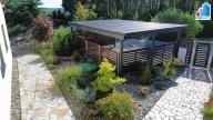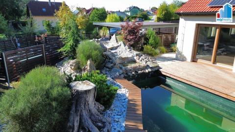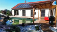 Hledáte kvalitní bydlení nedaleko města Plzeň? Naše společnost Mixreality Vám nabízí k prodeji moderní, plně vybavený a nadstandardně řešený rodinný dům typu bungalov o dispozici 4+kk, který se nachází v klidné a žádané lokalitě Nýřany – Kamenný Újezd, jen pár minut od Plzně. Dům je situován na rovinatém, oploceném pozemku o celkové výměře 1000 m². Zastavěná plocha činí 149 m², užitná plocha 115 m². Interiér domu nabízí obývací pokoj s kuchyňským koutem a jídelní částí, tři samostatné ložnice, velkou koupelnu s vanou i sprchovým koutem a praktickou technickou místnost. Dominantou domu je prostorná terasa, která tvoří ideální zázemí pro odpočinek i rodinná setkání. Dům se prodává kompletně zařízený, včetně moderní kuchyňské linky se spotřebiči, vestavěného nábytku luxusními napnutými stropy a dalšího vybavení. Vytápění a ohřev teplé vody zajišťuje úsporné tepelné čerpadlo. Součástí domu je také fotovoltaická elektrárna s výkonem 10 kWp, která výrazně snižuje náklady na provoz. Komfort bydlení doplňuje kamerový systém a elektricky ovládané žaluzie na všech oknech. Součástí exteriéru je wellness zóna s kvalitní vířivkou, posilovnou a samostatnou finskou saunou. Na pozemku se dále nachází přírodní koupací jezírko o ploše 50 m² s vlastní čističkou vody, zahrádka se zvýšenými záhony, plechová garáž a zastřešené parkovací stání pro dva automobily. Celý pozemek je oplocen a nabízí maximální soukromí i bezpečí. Tato nemovitost je ideální volbou pro rodinu, která hledá moderní, úsporné a nadstandardní bydlení v klidné lokalitě s výbornou dostupností do Plzně. Lokalita Kamenný Újezd u Nýřan je vyhledávaná pro svou kombinaci přírody, klidu a občanské vybavenosti v dosahu. V případě zájmu o více informací nebo domluvení prohlídky nás neváhejte kontaktovat.