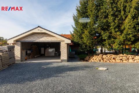 Na pozemku je elektrická vjezdová brána na dálkové ovládání a možnost parkování dalšího vozu před domem. Zahrada 570 m² nabízí altán (24 m²) s posezením, grilem a vířivkou pro čtyři osoby.