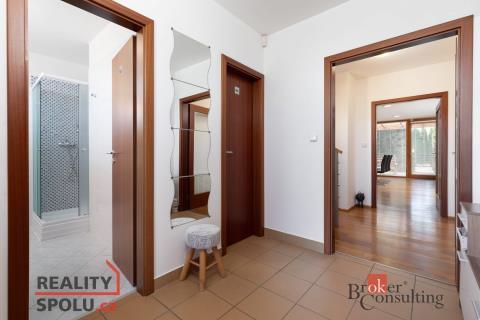 Řadový rodinný dům v oblíbené lokalitě Opavy – Na Prachovníku Nově nabízíme k prodeji moderní řadový rodinný dům v jedné z nejžádanějších částí Opavy – v klidné a vyhledávané rezidenční čtvrti Na Prachovníku. Tato lokalita poskytuje příjemné a bezpečné bydlení s výbornou dostupností jak do centra města, tak i do okolní přírody. Dům je součástí trojdomku (řadovky). Část zahrady je využívána společně, další část je ve výhradním vlastnictví majitele a nabízí dostatek soukromí pro odpočinek či zahradničení. Parkování je zajištěno na pozemku před domem v uzavřeném areálu s vjezdovou bránou na dálkové ovládání, případně pohodlně v garáži, která je přímo součástí domu. V přízemí se nachází garáž, zádveří, samostatné WC s umyvadlem, koupelna a prostorný obývací pokoj s kuchyní o rozloze 57 m². Obytná část je orientována na jih a díky velkoformátovým dřevěným oknům je krásně prosvětlená. Z obývacího pokoje je přímý vstup na terasu a do soukromé části zahrady, ideální pro relaxaci nebo rodinné posezení. Kuchyně je plně vybavena vestavěnými spotřebiči, komfort doplňuje klimatizace LG a krb. Garáž s elektrickými vraty je přístupná přímo z předsíně, což zajišťuje maximální pohodlí. V přízemí je umístěn také plynový kotel Junkers. Do druhého podlaží vede elegantní dřevěné schodiště. Zde se nacházejí tři samostatné pokoje, dvě koupelny a terasa. Hlavní ložnice má vlastní koupelnu, z dalšího pokoje je vstup na terasu s výhledem do zahrady. V celém domě jsou dubové podlahy a střešní okna, která zajišťují dostatek přirozeného světla. Dům je ve výborném technickém stavu, nevyžaduje žádné další investice a je připraven k okamžitému nastěhování. Na zahradě se nachází bazén s kompletním technickým zázemím. Lokalita Na Prachovníku je ceněná pro svou klidnou atmosféru, dostupnost služeb a přátelské sousedství. Veškerá občanská vybavenost je v docházkové vzdálenosti. Pro více informací nebo domluvení prohlídky nás neváhejte kontaktovat. Financování zajistíme zdarma v rámci našich služeb.