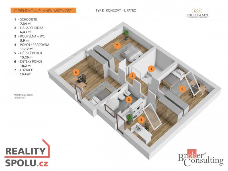 ENGLISH BELOW S radostí Vám představujeme dům typu D (koncový) v exkluzivním projektu řadových rodinných domů v Ořechu u Prahy. Projekt Kalinova zahrada (web kalinovazahrada) představuje velkorysé moderní rodinné domy na prahu metropole. Komfortní bydlení v oáze klidu a zároveň s výborně dostupným centrem Prahy může být jasnou volbou pro váš rodinný život i lukrativní investiční příležitost. V osobitém pojetí kombinuje komplex Kalinova zahrada klasiku s moderním designem. Během tří etap se ve třech liniích 5, 6 a 7 řadových domů zrodí nová, příjemně a harmonicky působící čtvrť s celkem 18 dvoupodlažními rodinnými domy. Nabídka více typů rodinných domů Kalinova zahrada díky různým dispozicím vyhoví rozmanitým požadavkům svých klientů. Prostorné bydlení s dispozicemi 3+kk, 4+kk, 5+kk či 6+kk a celkovou plochou od 147 m2 do 170 m2 je i díky výborné občanské vybavenosti a dostupnosti metropole mimořádně atraktivním zejména pro rodiny s dětmi či partnerské dvojice s nároky na vyšší životní standard. Kalinova zahrada odhaluje významný potenciál obce Ořech u Prahy. Na jihozápadním okraji české metropole se z malebné vsi s dávnou historií rodí atraktivní, vyhledávaná lokalita s vkusně vyhlížející rodinnou zástavbou plnou života i společenského dění a zároveň s bezkonkurenční občanskou vybaveností hlavního města Prahy nadosah. Těšíme se na setkání s Vámi při osobní schůzce nebo prohlídce nemovitosti. ENGLISH We are pleased to present type D (end of the block) house in an exclusive project of terraced houses in Ořech u Prahy. The Kalinova zahrada project (web kalinovazahrada) presents generous modern family homes on the doorstep of the metropolis. Comfortable living in an oasis of calm and at the same time with excellent access to the center of Prague can be a clear choice for your family life as well as a lucrative investment opportunity. In a unique concept, the Kalinova zahrada complex combines classics with modern design. During three stages, a new, pleasant and harmonious district with a total of 18 two-story family houses will be born in three lines of 5, 6 and 7 terraced houses. Kalinova zahradas offer of several types of family houses, thanks to its various layouts, meets the diverse requirements of its clients. Spacious housing with layouts of 3+kk, 4+kk, 5+kk or 6+kk and a total area from 147 m2 to 170 m2 is extremely attractive, especially for families with children or couples with demands for a higher standard of living, thanks to the excellent civic amenities and accessibility of the metropolis. The Kalinova zahrada reveals the significant potential of the village of Ořech u Prahy. On the south-western edge of the Czech capital, a picturesque village with a long history has given birth to an attractive, sought-after locality with a tasteful-looking family building full of life and social events, and at the same time with the unrivaled civic amenities of the capital city of Prague within easy reach.