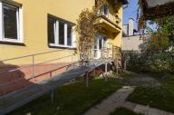 V přízemí je vybudována rampa, která sloužila pro bezbariérový přístup invalidního vozíku - lze odstranit, případně si zde můžete vybudovat samostatný vchod a nemovitost takto rozdělit na dvě jednotky.
