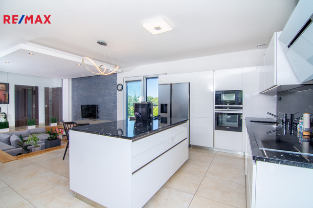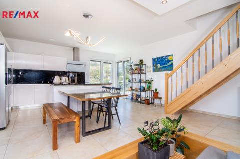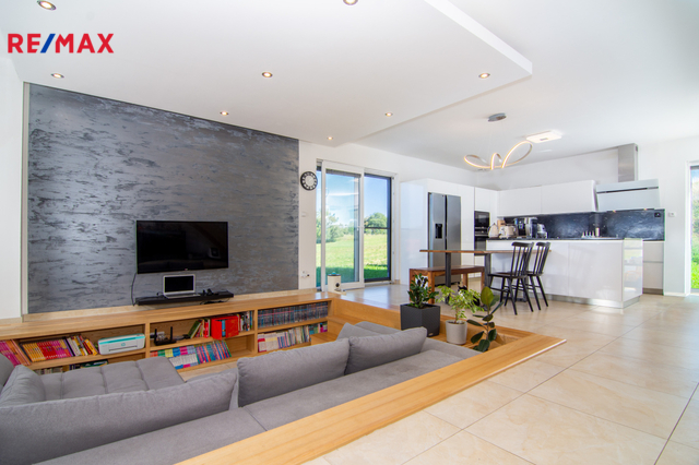 Moderní rodinný dům z roku 2019, v klidné části Ostravy, který nabízí komfortní bydlení spojené s dostatkem prostoru i soukromí. Dům má zastavěnou plochu 205 m² a je umístěn na pozemku o velikosti 1 371 m². Dispozice domu je promyšlená tak, aby splňovala nároky celé rodiny. V přízemí se nachází prostorný obývací pokoj propojený s kuchyní (48 m2), kde originálně zapuštěná sedací souprava vytváří jedinečný prvek interiéru. Z kuchyně i ložnice (17 m2) je přímý vstup na terasu. Hlavní ložnice má svou vlastní luxusní koupelnu (8 m2) s vanou, sprchovým koutem a dvěma umyvadly, další dva pokoje (16,8 m2 a 9,2 m2) doplňuje koupelna (4,6 m2) s vanou a WC. V patře se rozprostírá velký pokoj (22,6 m2), který lze využít jako hernu, pracovnu či kombinaci obojího, nechybí ani prostorná chodba (17,8 m2) a další koupelna (5 m2) se sprchovým koutem a WC. Součástí domu je velká zahrada, která nabízí volnost pro úpravy podle představ nového majitele. Na pozemku se nachází terasa pro venkovní posezení a vlastní basketbalové hřiště. Parkování je zajištěno v garáži (44 m2) pro dva vozy a na dalších dvou venkovních stáních před domem. Technické zázemí domu splňuje požadavky moderní doby – klimatizační systém zajišťuje vytápění i chlazení a je napojen na všechny místnosti v domě. K dispozici je indukční varná deska, plastová okna, napojení na veřejný vodovod a elektřinu (230 V). Odpad je řešen soukromým septikem, přičemž v letech 2026–2027 se plánuje výstavba veřejné kanalizace. Provozní náklady činí přibližně 5 600 Kč měsíčně za elektřinu a 600 Kč za vodu. Dům se nachází v tiché a příjemné části obce, která zároveň zajišťuje dobrou dostupnost do centra Ostravy i na hlavní dopravní tahy. Jedná se o ideální volbu pro rodinu, která hledá moderní, prostorné a originální bydlení s možností aktivního trávení volného času na vlastním pozemku. Z právních důvodů je uvedena energetická třída G (bez PENB), realita však odpovídá nižší energetické náročnosti. V domě byl instalován rekuperátor energie v ceně 400 000 Kč a nyní jsou platby cca 5 500 Kč měsíčně za veškeré náklady na vytápění, ohřev vody atd.