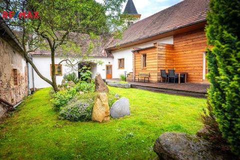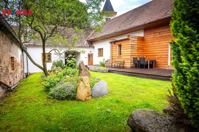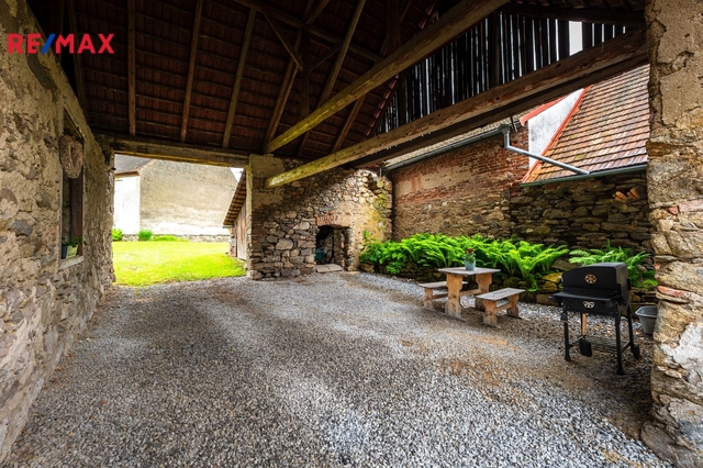 Dům s uzavřeným dvorem z přední i zadní části nabízí maximální soukromí. Dřevěná terasa podél vnitřního dvora k využití a umístění odpočinkové části, grilovací kout s ohništěm, relaxační zóna a skalky. Průjezdnou stodolou se dostanete na zahradu, na kterou je možný druhý vjezd i z hlavní komunikace. Samostatná stodola o výměře 200m2 je evidována jako stavební pozemek, možnost rekonstrukce a oddělení. V případě zájmu možnost prodeje pouze stodoly se zahradou, která je přístupná z obecní komunikace. Odděleno by bylo geometrickým plánem. Dům je možný použít pro účely rodinného bydlení či vícegeneračního bydlení, ale také komerční. Celková výměra pozemku je 1624m2, obytná plocha má výměru 363m2, plocha stodol a technických místností je 408m2.