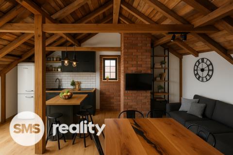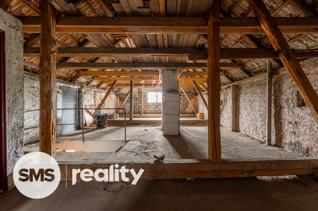 V současnosti nabízí jednu bytovou jednotku, ale díky velkorysému podkroví můžete snadno vytvořit další obytné prostory – třeba dětské pokoje, samostatný byt pro rodiče nebo útulný ateliér.