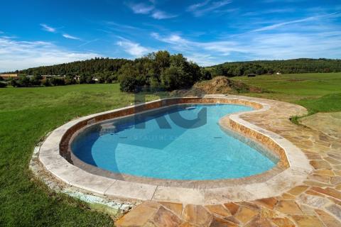 Exkluzivně Vám nabízíme k prodeji novostavbu rodinného domu v klidné atraktivní lokalitě obce Semice u Písku. Mimořádná novostavba se zahradou o velikosti 4999 m2 kombinuje blízkost přírody a velmi rychlé spojení s Prahou díky dálnici R4. Veškerou občanskou vybavenost zastupuje Písek v pěší dostupnosti. Jednopodlažní dům a technická místnost s veškerým technologickým zázemím domu nabízí velkorysou výměru obytné plochy 272 m2. Obytná část nabízí́ praktickou dispozici 5+kk. Tvoří ji prostorný obývací pokoj spojený s kuchyní, se vstupem na terasu, pohodlný přístup do zahrady a čtyři samostatné pokoje. Ze společného prostoru se vstupuje do dvou klidových zón, jedné se dvěma ložnicemi, šatnou a koupelnou s toaletou, a druhé s ložnicí se vstupem do šatny, koupelnou s toaletou a relaxační zónou s finskou saunou. Další dva obytné pokoje jsou přístupné z obývacího prostoru a mohou budoucím majitelům sloužit jako pracovny či pokoje pro hosty. Ze všech místností domu můžete vstoupit do zahrady nebo na terasu. Dům je vybavený elektricky ovládanými předokenními žaluziemi a je vytápěn tepelným čerpadlem s podlahovou sestavou rozvedenou po celé obytné části. Příjemnou atmosféru navodí krb umístěný v obývací části domu. Podlahy domu tvoří dřevěná podlaha a keramická dlažba. Venkovní obklad je modřín. Na zahradě je vybudovaný bazén s protiproudem. Prostorná garáž pro tři auta je samostatně postavená na nádvoří domu. Bezpečnost domu zajišťuje připravený bezpečnostní systém. Dům bude s vjezdovou bránou a zpevněnou příjezdovou komunikací. Pro sjednání prohlídky a další informace mě neváhejte kontaktovat.