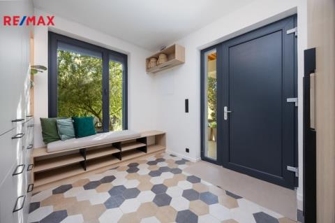 Dovoluji si Vám exkluzivně nabídnout moderní dvoupodlažní novostavbu rodinného domu, který je situován do klidné části obce Písková Lhota, v blízkosti lázeňského města Poděbrady. Dům je kompletně vybaven vestavěným nábytkem na míru, který je součástí prodejní ceny. V 1. NP je k dispozici zádveří, vstupní hala, obývací pokoj s kuchyní a jídelním koutem, pokoj pro hosty, koupelna se sprchovým koutem a samostatná toaleta. Kuchyňská linka je vybavena špičkovými vestavěnými spotřebiči De Dietrich, na podlahách byly použitý kvalitní třívrstvé dubové lamely nebo italské keramické dlažby. Velkoformátová okna s izolačním trojsklem propojují tuto část domu s venkovní terasou a navazující zahradou, která byla navržena zahradním architektem. 2. NP disponuje dvěma dětskými pokoji, hlavní ložnicí s prostornou šatnou, koupelnou s vanou a samostatnou toaletou. Podlaží jsou propojena samonosným schodištěm s dřevěnými stupni. Vytápění a ohřev teplé vody je zajištěn kondenzačním kotlem Baxi, který v kombinaci s kvalitními okny a zateplením Vám garantuje příznivé náklady na provoz domu. Dále jsou k dispozici venkovní garážové stání pro dva vozy se zastřešením a navazujícím skladem. Stavba je napojena na kompletní inženýrské sítě - elektřina, voda, tlaková kanalizace a plyn. Obec má základní občanskou vybavenost, mj. úřad, obchod a nebo mateřskou školku. Veškerá další vybavenost je v sousedních Poděbradech, vzdálených cca 5 km. Okolí nabízí krásné koupání nebo rybolov v nedalekém pískovém jezeře, rovněž oceníte napojení na cyklostezky, které Vás dovedou až do Poděbrad. Výborná dopravní dostupnost Prahy, nájezd na D 11 s dojezdem na Černý Most do 20 min od domu. Možnost financování koupě za pomocí hypotéčního úvěru, s jehož zajištěním Vám pomohou naši finanční specialisté. V případě zájmu o prohlídku mě neváhejte kontaktovat. Děkuji a těším se na setkání s Vámi.