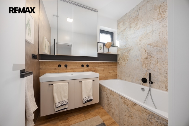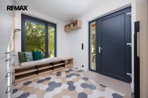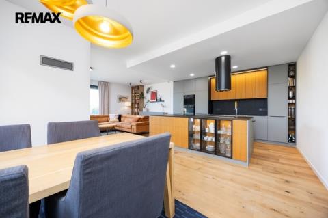 Dovoluji si Vám exkluzivně nabídnout moderní dvoupodlažní rodinný dům, který je situován do klidné části obce Písková Lhota, v blízkosti lázeňského města Poděbrady. Dům je kompletně vybaven vestavěným nábytkem na míru, který je součástí prodejní ceny. V 1. NP je k dispozici zádveří, vstupní hala, obývací pokoj s kuchyní a jídelním koutem, pokoj pro hosty, koupelna se sprchovým koutem a samostatná toaleta. Kuchyňská linka je vybavena špičkovými vestavěnými spotřebiči De Dietrich, na podlahách byly použitý kvalitní třívrstvé dubové lamely nebo italské keramické dlažby. Velkoformátová okna s izolačním trojsklem propojují tuto část domu s venkovní terasou a navazující zahradou, která byla navržena zahradním architektem. 2. NP disponuje dvěma dětskými pokoji, hlavní ložnicí s prostornou šatnou, koupelnou s vanou a samostatnou toaletou. Podlaží jsou propojena samonosným schodištěm s dřevěnými stupni. Vytápění a ohřev teplé vody je zajištěn kondenzačním kotlem Baxi, který v kombinaci s kvalitními okny a zateplením Vám garantuje příznivé náklady na provoz domu. Dále jsou k dispozici venkovní garážové stání pro dva vozy se zastřešením a navazujícím skladem. Stavba je napojena na kompletní inženýrské sítě - elektřina, voda, tlaková kanalizace a plyn. Obec má základní občanskou vybavenost, mj. úřad, obchod a nebo mateřskou školku. Veškerá další vybavenost je v sousedních Poděbradech, vzdálených cca 5 km. Okolí nabízí krásné koupání nebo rybolov v nedalekém pískovém jezeře, rovněž oceníte napojení na cyklostezky, které Vás dovedou až do Poděbrad. Výborná dopravní dostupnost Prahy, nájezd na D 11 s dojezdem na Černý Most do 20 min od domu. Možnost financování koupě za pomocí hypotéčního úvěru, s jehož zajištěním Vám pomohou naši finanční specialisté. V případě zájmu o prohlídku mě neváhejte kontaktovat. Děkuji a těším se na setkání s Vámi. Prodávající si vyhrazuje právo vybrat kupujícího na základě jím zvolených kritérií.
