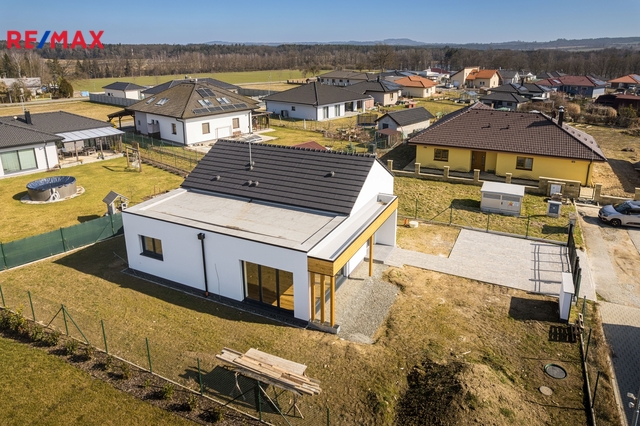 Nabízíme ke koupi novostavbu rodinného domu se zahradou, situovanou v rezidenční lokalitě Strkov, části města Planá nad Lužnicí. Objekt je situován na konci slepé ulice (Karasová) a díky tomuto umístění a vyřešené okolní zástavbě, poskytne budoucím majitelům dostatek prostoru pro klidné bydlení. Na pozemku s celkovou plochou 531 m2 se nachází zděná stavba jednopodlažního rodinného domu (kolaudováno v r. 2026) s dispozicí 4+kk (orientační půdorys v obrazové části inzerce) sestávající z: - vstupní chodby (zádveří) - centrální chodby objektu - světlého a prostorného obývacího pokoje s navazující kuchyňskou (příprava pro kuchyňskou linku ve tvaru L) a jídelní část, spíží a také se vstupem na krytou jižně orientovanou terasu - 3 samostatných pokojů (ložnice, dětské pokoje, pracovna) - koupelny s umyvadlem, vanou a WC - dalšího samostatného WC - místnosti s variabilní možností využití (šatna, komora – sklad) - technické místnosti s plynovým kotlem (Protherm) a zásobníkem na teplou vodu (120 l) Při stavbě nemovitosti byl kladen důraz na detail a kvalitu použitých materiálů, stejně jako na budoucí úsporu provozních nákladů domu. Objekt je postaven ze zdiva Porotherm 300 a zateplený fasádní tepelnou izolací s tloušťkou 200 mm. Má okna s izolačními trojskly ( s přípravou na venkovní žaluzie) a zateplené podhledy. Střešní krytina – betonová střešní taška Tondach. Vytápění je zajištěno podlahovým topením. Díky tomu splňuje energetickou náročnost třídy B – velmi úsporný. Na zahradě u domu je (za elektricky ovládanou vjezdovou bránou) zpevněné parkovací stání pro 2 automobily a také podzemní retenční nádrž na dešťovou vodu. Nemovitost je připojena na veřejný rozvod elektřiny, plynu, vody a kanalizace. Přístup z místní veřejné komunikace. Strkov je část Plané nad Lužnicí, převážně zastavěná novějšími rodinnými domy. Lokalita nabízí klidné rezidenční bydlení s občanskou vybaveností (škola, školka, obchody, zastávka MHD a vlaková zastávka), přitom v blízkosti přírody (zámecký park, rybníky). Díky kombinaci dostupnosti do Tábora (10 min) a kvalitnímu napojení na dopravní síť (dálnice D3 Praha – České Budějovice) je Strkov atraktivním místem pro rodinné bydlení. Pro další informace, nebo v případě zájmu o prohlídku nemovitosti, kontaktujte prosím makléře nabídky. Prodávající si vyhrazuje právo vybrat kupujícího na základě jím zvolených kritérií.