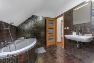 3. podlaží (ložnicové) nabízí tři samostatné a velmi prostorné pokoje, včetně hlavní ložnice o velikosti přes 21 m², a třetí, největší koupelnu vybavenou rohovou vanou, umyvadlem, WC a bidetem. Z oken této části je krásný výhled do okolní zeleně. Součástí domu je také velkorysý půdní prostor, který lze využít nejen jako úložné zázemí, ale nabízí i možnost budoucího rozšíření – například o ateliér, domácí pracovnu nebo další obytnou místnost.