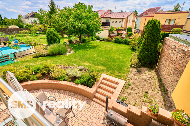 Orientace na jih zajišťuje slunce po celý den. Zahrada je okrasná i užitná (třešeň, moruše, borůvky, angrešt, rybíz) s automatickou závlahou. Posezení na terase pod úrovní zahrady zajišťuje naprosté soukromí.