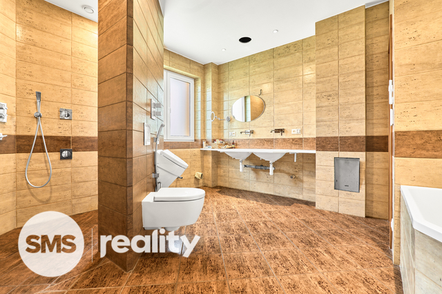 • 2. NP (Klidová zóna): Tři ložnice, každá s vlastní walk-in šatnou. Hlavní koupelna je vybavena kameninovým dvojumyvadlem na míru, sprchou i vanou. Dále zde najdete pracovnu (hostinský pokoj) a komoru.