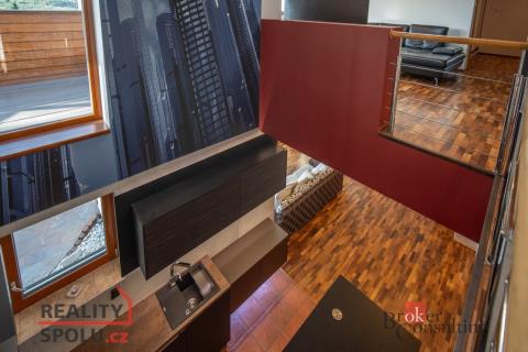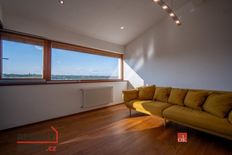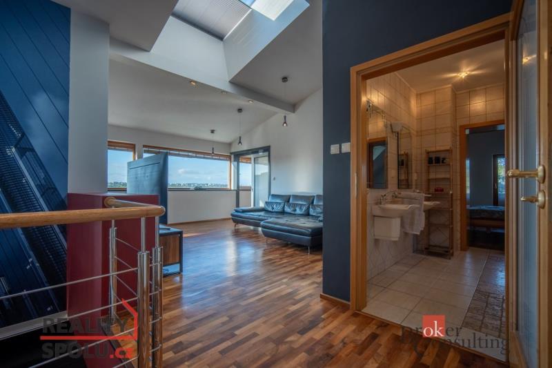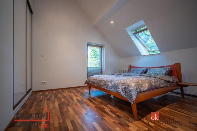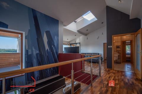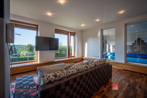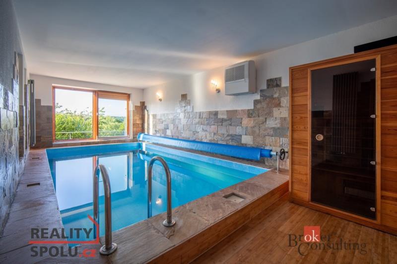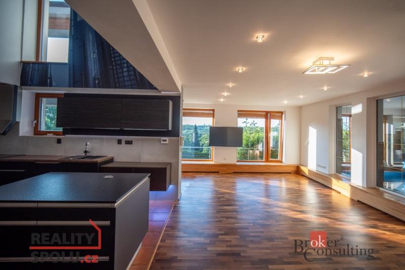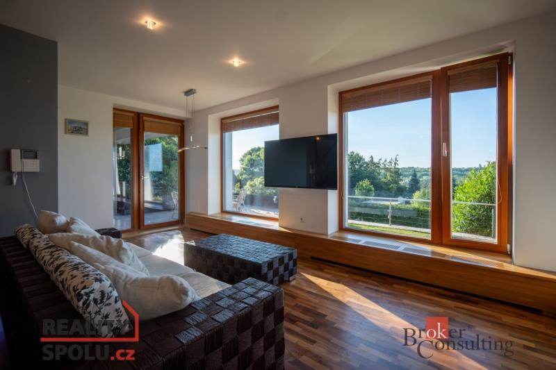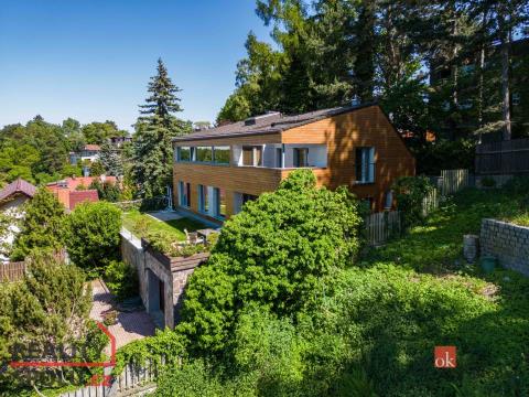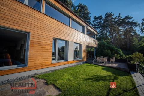 Je na krásném místě, obklopena zelení, na kopci s úžasným výhledem a přitom nedaleko centra města. Tato vila vás ohromí. Nachází se na Praze 5 ve vilové čtvrti, která je mnohým utajena. Máte tu tak klid a soukromí, které si zasloužíte. Další výhodou domu jsou velkorysé prostory a třeba vnitřní bazén. Dům má podlahovou plochu téměř 200m2 a k tomu 2 garáže. Stojí na svažitém, upraveném pozemku (723 m²) se vzrostlými stromy a na konci slepé ulice Za Mototechnou. Díky tomu, že dům stojí v horní části pozemku (nad garáží), máte úžasné výhledy jak z přízemí, kde je velká terasa a část zahrady, tak samozřejmě i v prvním patře domu. V přízemí domu se nachází velký obývací pokoj s kuchyní, koupelnou a vstupem do další části domu kde je vnitřní bazén a infrasauna. Tato část domu má 100 m2. Ve druhém patře je atrium, vstup do třech pokojů, na terasu a do koupelny. Hlavní ložnice má samostatný vstup do koupelny. Podlahy jsou dřevěné a v pokojích vestavěné skříně. Úžasné je prosklení, které je po celé délce severozápadní stěny s výhledem na část Prahy 5 a dále – Motol, Ladronku až po Břevnov. Ulice Za Mototechnou navazuje na Motolsko-Košířský park – jeden z nejhezčích přírodních parků v Praze, kde je i hřiště Golf Club Praha. Skvělé napojení na rozvadovskou spojku, tedy D5 na Plzeň. Pěšky jste kousek od Plzeňské - dobré spojení s centrem na Andělu jste autem za 15 minut / MHD 29 minut. Podobných nemovitostí je Praze jen pár, přijďte se sami přesvědčit. Honza Chundela