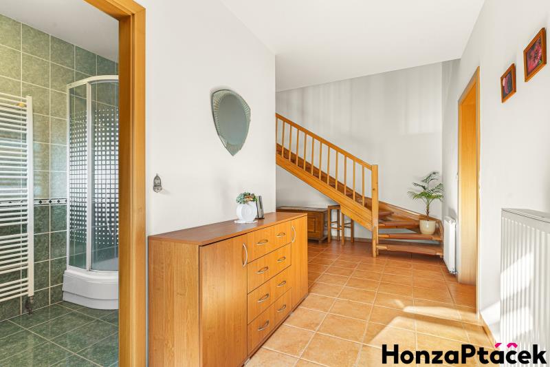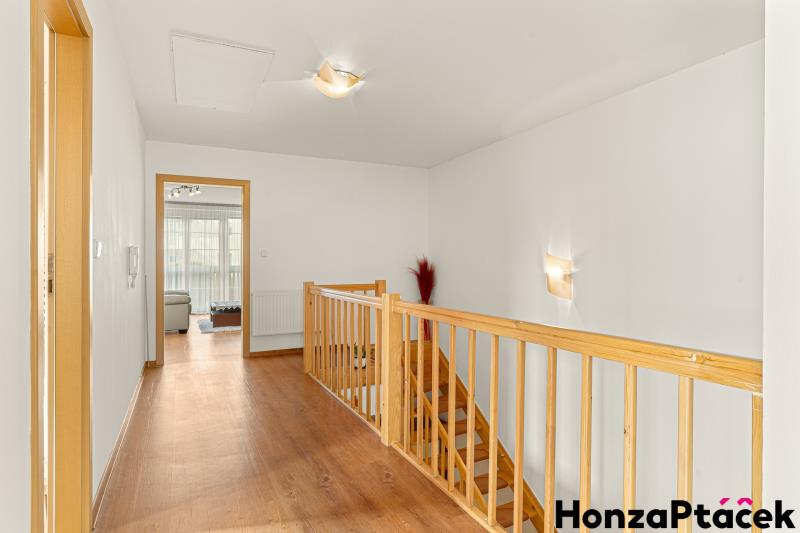 Nabízím k prodeji dvoupodlažní dům o celkové užitné ploše 187 m², nacházející se v městské části Praha 9 – Kyje, několik minut od Centra Černý Most a stanice metra Rajská zahrada. Pozemek má výměru 422 m² a je napojen na všechny inženýrské sítě – vodovod, tlakovou kanalizaci, elektřinu a plyn. Dispozičně je dům rozdělen tak, aby bylo možné využít jej jako dvougenerační, případně s oddělenou částí pro hosty či práci z domova. V přízemí se nachází obývací pokoj s kuchyňským koutem, ložnice a koupelna se sprchou a toaletou. V horním podlaží je další obývací prostor s kuchyní, dva samostatné pokoje a koupelna s vanou i sprchou. Z obývacího pokoje v patře je vstup na terasu s výhledem do zahrady. Dům je ve velmi dobrém technickém stavu. Podlahy jsou vinylové, okna plastová a o vytápění se stará plynový kotel Vaillant se zásobníkem. Součástí je garáž a parkovací stání na pozemku. Na pozemku za domem je k dispozici udržovaná zahrada se zatravněnou plochou, která vybízí k příjemnému venkovnímu posezení, relaxaci nebo drobnému hobby zahradničení. V okolí je kompletní občanská vybavenost, výborné dopravní napojení a zastávky MHD v docházkové vzdálenosti. Nedaleká vlaková stanice umožňuje přímé spojení do centra Prahy – na Hlavní i Masarykovo nádraží – s jízdní dobou přibližně 11 minut.