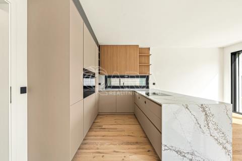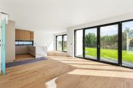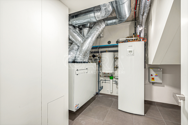 Ve standartním vybavení jsou hliníková okna s izolačním trojsklem, příprava pro předokenní elektrické žaluzie, celoplošně lepená třívrstvá dřevěná podlaha, designové obklady a dlažby, zařizovací zařízení Hansgrohe a Villeroy-Boch, příprava na krb, invertorové tepelné čerpadlo s vestavěným elektrokotlem, podlahové vytápění a rekuperace, retenční nádrž pro zalévání. Dokoncění domu je naplánováno na konec roku 2025.