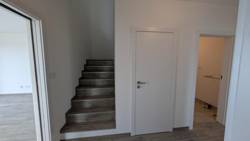Z obývacího pokoje je výstup na venkovní terasu o velikosti 20 m2 a dále do zahrady domu, kde byly položeny travní koberce po celé ploše zahrady. Zahrada je také připravena k okamžitému využívání. Dům je postavený z kvalitních a moderních materiálů včetně velkoformátových obkladů všech 3 koupelen. Příjezdová komunikace je veřejná komunikace ve vlastnictví města, v letošním roce proběhne její kompletní výstavba včetně finálních povrchů.