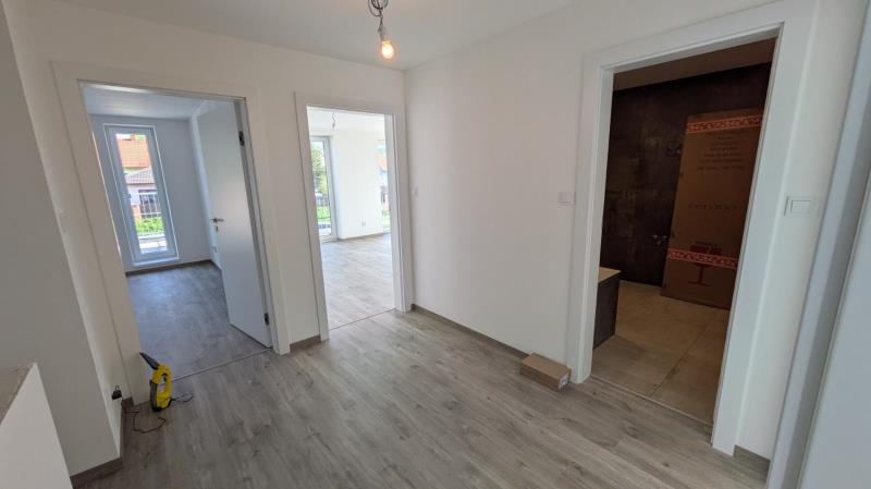 Z obývacího pokoje je výstup na venkovní terasu o velikosti 20 m2 a dále do zahrady domu, kde byly položeny travní koberce po celé ploše zahrady. Zahrada je také připravena k okamžitému využívání. Dům je postavený z kvalitních a moderních materiálů včetně velkoformátových obkladů všech 3 koupelen. Příjezdová komunikace je veřejná komunikace ve vlastnictví města, v letošním roce proběhne její kompletní výstavba včetně finálních povrchů.