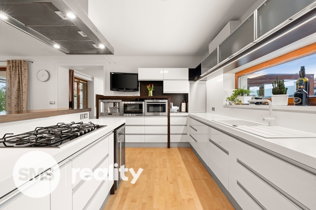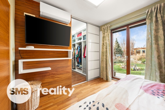 Nabízíme k prodeji samostatně stojící nízkoenergetický bungalov o dispozici 4+1 s užitnou plochou domu 146,31 m², zimní zahradou o ploše 34,2, garáží s užitnou plochou 61,1 m² a sklepem o ploše 35 m². Nemovitost se nachází v obci Prosiměřice, pouhých 10 km od Znojma. Tento dům, kolaudovaný v roce 2007, je situován na vlastním pozemku o rozloze 1 195 m². Dispozičně je rozdělen na dvě hlavní části: • Společenská část zahrnuje kuchyni s jídelnou, která navazuje na prostorný obývací pokoj s centrálním krbem a přímým vstupem na zimní zahradu s venkovním krbem. • Klidová část nabízí dvě samostatné ložnice a hlavní ložnici se šatnou. • V domě dále najdete technickou místnost, samostatnou toaletu a koupelnu se sprchovým koutem a toaletou. Vytápění zajišťuje kondenzační plynový kotel s podlahovým teplovodním systémem ve společenské části domu, zatímco pokoje v klidové části jsou vytápěny radiátory. Moderní komfort doplňuje nová fotovoltaická elektrárna o výkonu 9,6 kWp s bateriemi a klimatizace. Zahrada a exteriér Zahrada byla pečlivě navržena zkušeným zahradním architektem a nabízí nejen naprosté soukromí, ale i vizuální harmonii v průběhu celého roku. Součástí je vyhřívaný bazén se slanou vodou, přírodní koupací jezírko a stylová sauna se zahradní sprchou pro dokonalý relax. Automatický závlahový systém je napojený na retenční nádrž a vlastní vrtanou studnu, což zajišťuje efektivní a ekologickou údržbu zahrady. Pro parkování je připravena nadstandardní garáž, která pojme dvě vozidla. která je navíc částečně podsklepená a využít je možné i půdu. Další parkovací místa jsou k dispozici na vydlážděném nájezdu před domem. Lokalita Obec Prosiměřice nabízí plnou občanskou vybavenost, včetně základní a mateřské školy, obchodů, restaurací, zdravotního střediska a lékárny. Lokalita je ideální pro rodinné bydlení díky klidnému prostředí a dostupnosti města Znojma. Nemovitost je nabízená k prodeji včetně většiny vybavení, nábytku, spotřebičů a technologií, které jsou již zahrnuty v ceně. Pokud hledáte moderní bydlení bez kompromisů, tento dům může být tím pravým. Pro více informací nebo sjednání prohlídky mě neváhejte kontaktovat.