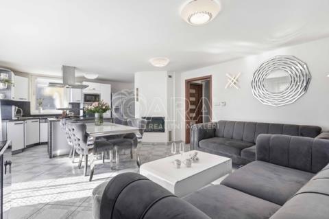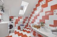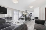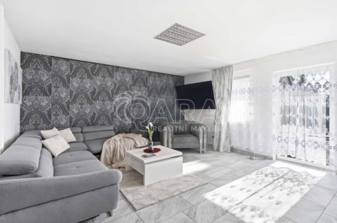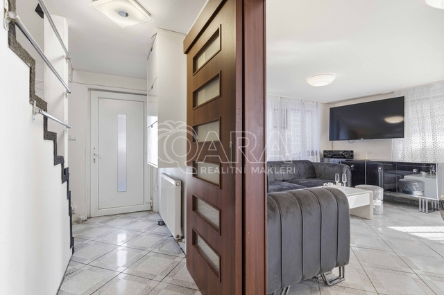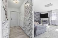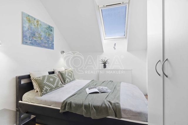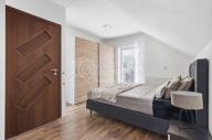 Druhou část domu o dispozici 3+kk tvoří obývací pokoj s kuchyňským koutem (cca 32 m2) a koupelnou s rohovou vanou a toaletou (cca 6 m2) a předsíň se schodištěm. Druhé nadzemní podlaží sestává ze dvou pokojů (cca 15,5 m2 a cca 17,5 m2)a koupelny se sprchovým koutem a toaletou (cca 6,2 m2). Ze dvou pokojů je vstup na společný balkon. V obývacím pokoji s kuchyňským koutem zavedeno podlahové vytápění, v ostatních prostorech instalovány radiátory.