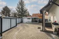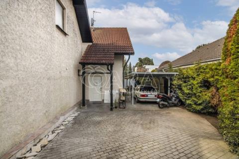 Na rovinatém pozemku o celkové výměře 561 m2 (vč. zastavěné plochy a nádvoří)se nachází zahradní domek s pergolou, bazén, zastřešení parkovacího stání. U domu na pozemku lze dále zaparkovat až tři vozidla. Před plotem další dvě vozidla.