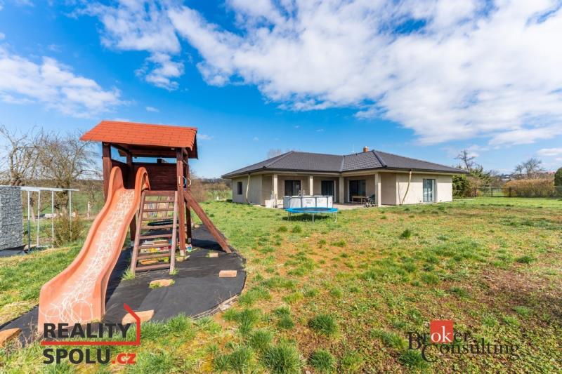 Dovolujeme si Vám nabídnout prostorný a moderní rodinný dům, který Vám zajistí pohodlné a klidné bydlení s minimálními provozními náklady. Nachází se v malebné obci Radíkovice, jen pár minut od Hradce Králové, v lokalitě obklopené přírodou a s výbornou dostupností do okolních měst. Základní informace: Dispozice: 5+KK Užitná plocha: 232 m² Pozemek: 1561 m² Garáž: Dvougaráž s přímým vstupem do domu Technologie: Tepelné čerpadlo, krb, centrální vysavač, trojskla Dům je promyšleně rozdělen do denní a noční zóny. Z prostorné vstupní haly se dostanete do hlavní obytné části – světlého obývacího pokoje s krbem, navazujícího na moderní kuchyň s jídelním koutem. Z obývacího pokoje je přímý vstup na hlavní terasu a do zahrady. Noční část domu tvoří dvě dětské ložnice (jedna s vlastní šatnou a vstupem na druhou terasu), pracovna a hlavní ložnice se šatnou a zabudovaným bezpečnostním trezorem. K dispozici je moderní koupelna s toaletou, samostatné WC a technická místnost se vstupem do garáže. Velkým benefitem je nízkonákladový provoz díky použití tepelného čerpadla a kvalitní izolace (okna s trojsklem). Dům je ideální pro rodiny, které hledají komfortní zázemí s dostatkem prostoru a soukromí. Zahrada okolo domu je prostorná, částečně upravená – připravena pro Vaše vlastní nápady a realizace. Lokalita: Obec Radíkovice je ideálním místem pro klidné bydlení v dosahu města. V blízkosti najdete přírodní a historické památky, např. zámek Hrádek u Nechanic. Dojezdová vzdálenost do Hradce Králové je jen pár minut, stejně tak rychlé napojení na dálnici směr Praha. Máte-li jakékoli dotazy, neváhejte nás kontaktovat. Rádi Vám pomůžeme i s financováním pomocí hypotečního úvěru.