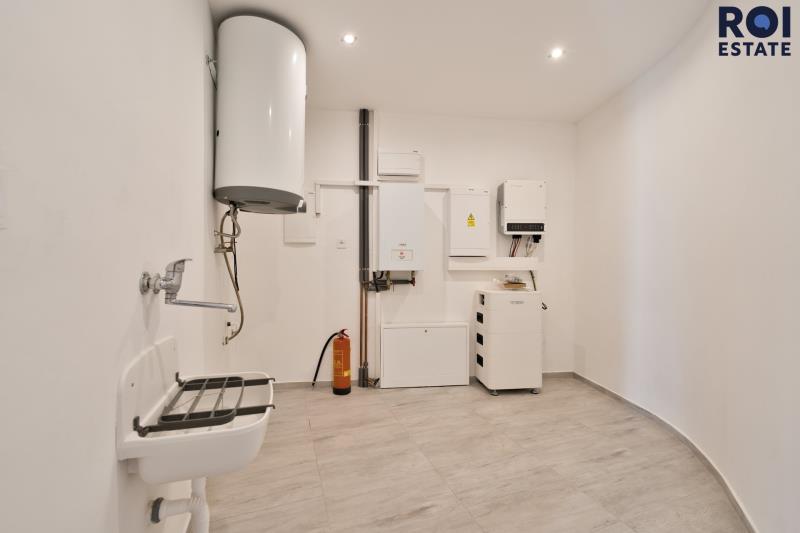 Na adrese Sportovní v Rosicích se nachází výjimečný rodinný dům dokončený v roce 2019, který na první pohled zaujme svou atypickou architekturou. Tato novostavba vystupuje z řady běžných projektů a nabízí bydlení s osobitým charakterem pro ty, kteří hledají originalitu a neotřelé prostorové řešení. Celý dům byl navržen s důrazem na funkční design a estetiku, což z něj činí skutečný architektonický solitér v dané lokalitě. Interiér domu o dispozici 3+kk je díky svému atypickému řešení velmi prosvětlený a vzdušný. Centrem přízemí je velkorysý obývací pokoj s krbem, který tvoří estetickou i funkční dominantu prostoru a dodává moderní stavbě pocit skutečného domova. Na obývací část navazuje moderní kuchyňský kout se strategicky umístěnou skrytou komorou pro potraviny. Praktickou stránku přízemí doplňuje koupelna, samostatná toaleta a prostorná technická místnost, která poskytuje nadstandardní zázemí pro chod domácnosti. Velkým benefitem je architektonická připravenost domu pro snadnou úpravu na dispozici 4+kk, čímž stavba pružně reaguje na budoucí potřeby rodiny. Horní patro s ložnicemi doplňuje prostorná terasa, která slouží jako privátní venkovní zóna s výhledem, ideální pro chvíle klidu a relaxace. Moderní a zodpovědný přístup ke stavbě podtrhuje instalovaná fotovoltaická elektrárna, která zajišťuje úsporný provoz a energetickou nezávislost. K domu náleží také prakticky řešená zahrádka, která harmonicky doplňuje jeho unikátní vzhled a nabízí prostor pro odpočinek bez náročné údržby. Lokalita v Rosicích nabízí dynamický životní styl s veškerou občanskou vybaveností v bezprostřední blízkosti a bleskovým spojením do Brna. Tato nemovitost představuje vzácnou kombinaci technologické vyspělosti a architektonické odvahy, která uspokojí i ty nejnáročnější zájemce o specifické bydlení. Těšíme se na Vás na osobní prohlídce. Tohle prostě chcete vidět.