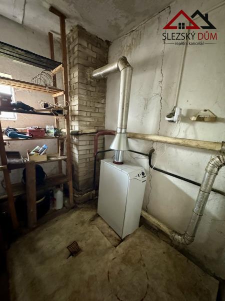 Dům je napojen na všechny hlavní sítě: veřejný vodovod, elektřinu, plyn i obecní kanalizaci. Vytápění zajišťuje plynový kondenzační kotel napojený na ústřední topení (radiátory), který zároveň slouží i pro ohřev teplé vody. Komín je vyvložkovaný (připraven pro bezpečný odvod spalin). Elektroinstalace v domě je původní hliníková, rozvody vody jsou vedeny v kovových (litinových) trubkách – obojí plně funkční.