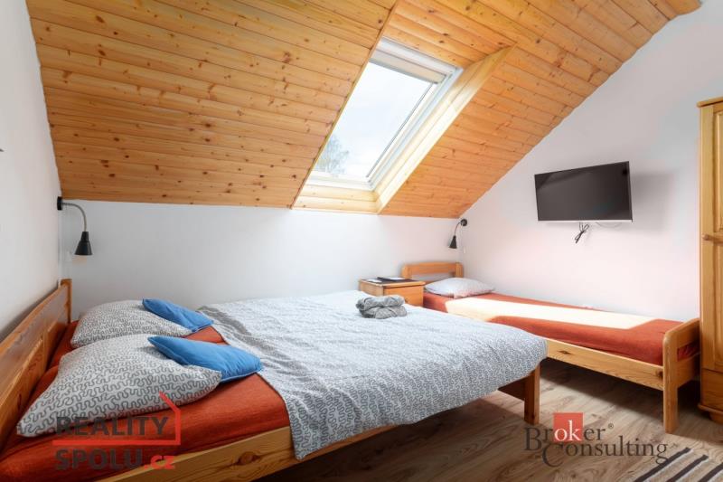 Prodej RD v malebné vesničce Rudná pod Pradědem v části Stará Rudná. Tento moderní dům je postavený z nejkvalitnějších stavebních materiálů, je zateplený, má vlastní čističku, studnu i přípojku vody. Tepelné čerpadlo na zemní kolektor s datovým ovládáním zajišťuje pohodovou obsluhu na dálku pro topení, je zde i příprava na FVE.1 x. • Bytová jednotka 1+1 + ubytování v soukromí 1 apartmán a 3 pokoje s kapacitou 10 lůžek a 1 přistýlka. S komfortním vybavením vířivka, sauna, společenská místnost, velká kuchyně a americká lednice, několik koupelen. • V Blízkosti penzionu se nachází Malá Moravka i Karlov se sjezdovkami a lyžařskými vleky, dále je zde mnoho turistických tras zasahující až na nejvyšší horu Jeseníků Praděd v dosahu 18 km nad Karlovou Studánkou. • Karlova Studánka - Moderní a přitom starobylé, ojediněle přebudované lázně obklopené horskou přírodou. Leží v panenské přírodě na východní straně nejvyšší hory Jeseníků Pradědu, v údolí horské říčky Bílé Opavy, a pyšní se nejčistším vzduchem ve střední Evropě. • Pro cyklistické nadšence jsou zde roviny i horský terén. • Z památek lze navštívit Bruntálský zámek nebo nedaleký hrad Sovinec. • Pro vodní radovánky můžete využít Wellnes centrum Bruntál, nebo bazénový komplex Karlova Studánka. Na přírodní koupání či rybaření přehradu Slezská Harta do vzdálenosti 20 km. Cele okolí je protkané malebnou přírodou v CHKO s velkým množstvím zajímavých míst a rozhleden. • Všechno vybavení nemovitosti je součástí kupní ceny.