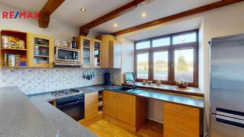 Tento dům o dispozici 8+1 s užitnou plochou 214 m2, na pozemku o celkové rozloze 2580 m2 nabízí novým majitelům veškerý komfort bydlení i relaxaci na krásné rozlehlé zahradě s koupacím jezírkem.