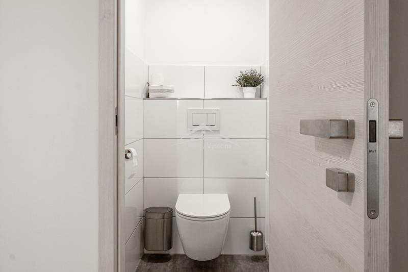 Součástí nemovitosti je také rozsáhlá samostatná a plně vybavená dílna o užitné ploše přibližně 100 m², která představuje velkou přidanou hodnotu pro podnikání, servisní činnost nebo technické hobby. Dílna je zateplená, vytápěná, má vlastní elektroměr a připojení 220/380 V, což umožňuje provoz energeticky náročnějších strojů. Je vybavena hydraulickým zvedákem, díky čemuž se výborně hodí pro autoservis nebo podobné řemeslo. Nechybí zde sociální zázemí, samostatná kancelář vhodná pro administrativu či zákaznické zázemí, dále sklad, půda na uložení materiálu a příprava na další koupelnu, což rozšiřuje možnosti budoucího využití. Před dílnou se rozkládá velká vydlážděná plocha, ideální pro parkování více vozidel, manipulaci s materiálem či skladování. Přístup je komfortní díky vysokým posuvným vratům s výškou 330 cm, která umožňují bezproblémový vjezd dodávek i větších vozidel včetně obytných aut.