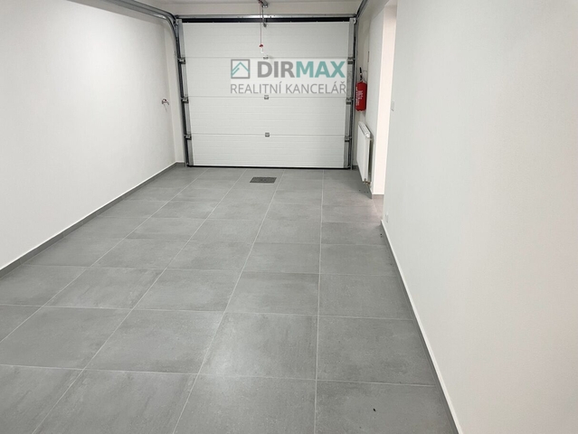 Na zemi je zámková dlažba. V přední části je hlavní a také jediný vstup do domu a vjezd do garáže přes dálkově ovládaná vrata.