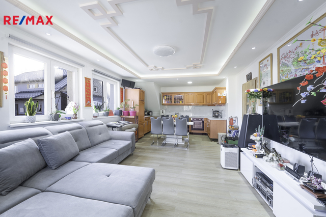 Ve druhém nadzemním podlaží je k dispozici bytová jednotka 5+kk, též včetně koupelny se sprchou a toaletou.