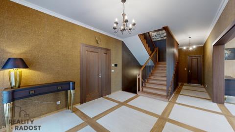 - Počet místností: 3 ložnice + 1 pokoj v přízemí + obývací pokoj s jídelnou + kuchyně + sauna + relaxační zóna + 3 koupelny + šatny