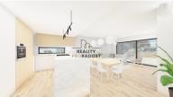b) nebo stavbu zahrnující kompletní sanitu, toaletu a koupelny včetně obkladů a dlažeb, interiérové dveře, veškeré podlahy a povrchy včetně obkladu schodiště + zábradlí, dodávku elektro bez venkovních a vnitřních svítidel, bez kuchyňské linky a přípravu na fotovoltaiku.