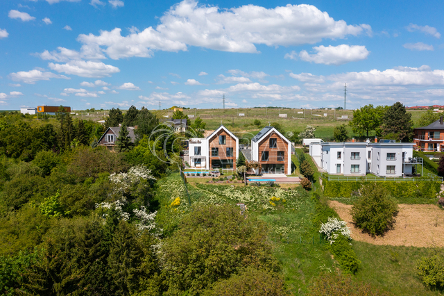 Nabízíme exkluzivní nízkoenergetickou vilu s bazénem a panoramatickým výhledem do údolí Únětického potoka.