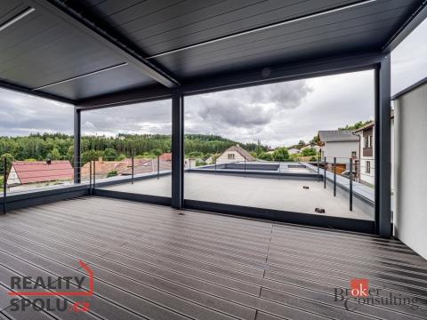 Ve výhradním zastoupení nabízíme k prodeji prostornou novostavbu rodinného domu s podlahovou plochou včetně příslušenství 397 m2, situovanou v klidné a žádané lokalitě Strakonic. Exklusivní novostavba navržena v architektonicky čistých liniích, s promyšlenými dispozicemi a za použití kvalitních materiálů a moderních technologií dodávají vile nadčasový charakter, který podtrhuje atraktivní lokalita v dosahu centra města i veškeré občanské vybavenosti. Dispozice domu je promyšlená a nabízí dostatek prostoru pro pohodlné rodinné bydlení. V suterénu se nachází technické zázemí, pracovna, wellness zóna a vstup do venkovního SPA. Přízemí tvoří prostorný obývací pokoj s přípravou pro kuchyňskou linku a krb, s přímým vstupem na terasu a zahradu s bazénem, dále dvě ložnice, koupelna, šatna a průchod do garáže pro dva automobily. Ve druhém patře se nachází ložnice se samostatnou koupelnou a přístupem na prostornou terasu s pergolou, dva pokoje s balkóny a další koupelna. Dům je připraven k dokončení podle představ nového majitele, což umožňuje doladit interiér přesně na míru. Moderní technologie zajišťují vysoký komfort a úsporný provoz. Podlahové topení je napojeno na tepelné čerpadlo vzduch–voda s možností letního přichlazení, nechybí systém rekuperace pro zdravé větrání, inteligentní elektroinstalace KNX, kamerový a zabezpečovací systém. Na střeše jsou instalovány fotovoltaické panely o výkonu 16,2 kWp s bateriovým úložištěm 28,8 kWh, k dispozici jsou dvě nabíjecí stanice pro elektromobily a venkovní jednotka klimatizace. K odpočinku slouží zahrada s vyhřívaným bazénem o rozměrech 8×4 metry a třemi bioklimatickými pergolami s elektrickým ovládáním. Dešťová voda je svedena do akumulační nádrže, která umožňuje její využití na zalévání. Velikost pozemku 848 m2. Zastavěná plocha domu dle KN 284 m2. Podlahová plocha včetně příslušenství 397 m2. Celková plocha včetně teras a balkonů 553 m2. Veškerá občanská vybavenost je v docházkové vzdálenosti (školka, škola, pošta, lékař, apod.). Majitel si vyhrazuje právo výběru budoucího majitele dle svých vlastních zvolených kritérií. Zajistíme Vám výhodné financování. Přijďte se osobně přesvědčit o výjimečnosti tohoto domu. Cena bude sdělena pouze vážným zájemcům.