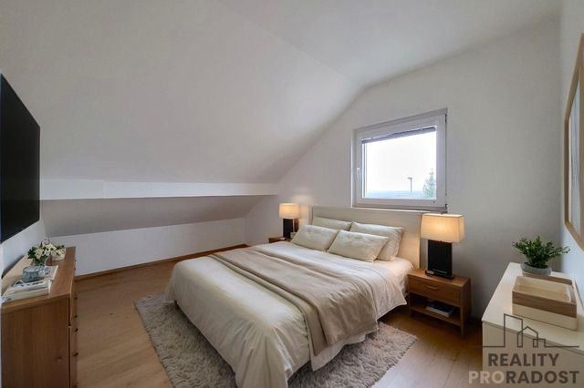Ve výhradním zastoupení nabízím k prodeji velmi pěkně udržovaný rodinný dům s parametry téměř novostavby v oblíbené a klidné obci Suchohrdly u Znojma, na ulici Pálavská. Jedná se o cihlovou stavbu s užitnou plochou 135 m² a zastavěnou plochou 92 m², doplněnou o zahradu o velikosti 338 m². Ačkoli byl dům dokončen jako rodinný, sloužil po celou dobu pouze jako zázemí firmy a nikdy nebyl trvale obýván. Interiér je díky tomu ve výjimečně zachovalém stavu, bez známek běžného užívání. Finální svítidla nebyla v části domu osazena záměrně, aby si nový majitel mohl interiér dotvořit moderním osvětlením podle vlastního vkusu a stylu. Dispozice domu je řešena prakticky a přehledně. V přízemí se nachází vstupní chodba, světlý obývací pokoj propojený s kuchyní, koupelna, samostatné WC a technické zázemí. V podkroví jsou k dispozici tři samostatné pokoje vhodné jako ložnice, dětské pokoje či pracovna. Součástí podkroví je také prostor ideální pro velkou šatnu nebo další úložné zázemí. Zahrada o rozloze 338 m² nabízí příjemné místo pro odpočinek, hry dětí i drobné zahradní úpravy. Pozemek je dobře uspořádaný, nenáročný na údržbu a poskytuje dostatek soukromí. Součástí domu je také garáž, která zajišťuje bezpečné parkování a prostor pro uložení sezónních věcí. Dům je napojen na vodovod, kanalizaci a elektřinu 230 V. Vytápění je řešeno podlahovým topením, které zajišťuje komfortní bydlení po celý rok. Plyn je přiveden na hranici pozemku. Energetické náklady pomáhají snižovat solární panely umístěné na střeše. Nemovitost je celkově velmi pečlivě udržovaná a připravená k okamžitému využití. Suchohrdly patří dlouhodobě mezi nejvyhledávanější obce v okolí Znojma. Nabízejí kompletní občanskou vybavenost, školu, školku, dětská hřiště, sportoviště i výborné dopravní spojení. Klidná atmosféra, minimum provozu a bezpečné prostředí dělají z této lokality ideální místo pro rodinné bydlení. Pokud hledáte kvalitní rodinný dům v příjemné a dobře dostupné lokalitě, rád vás přivítám na osobní prohlídce. Nemovitost vám představím a zodpovím veškeré dotazy.