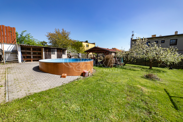 Nabízíme k prodeji zděný dvou generační rodinný dům o obytné ploše 290 m2 s dalšími okolními stavbami a s krásným pozemkem 1297 m2, nacházející se žádané lokalitě v okrese Praha Západ v obci Tachlovice, pouhých 16 km jihozápadně od centra Prahy. V domě se nacházejí dvě bytové jednotky se samostatným vchodem. Dům je velmi dobře a účelně navržen ke komfortnímu bydlení i odpočinku. První bytová jednotka je o dispozici 2+KK s koupelnou, toaletou, vstupní halou a nachází se v 1 NP domu. Druhá část domu je o dispozici 5+KK se dvěma lodžiemi, dvěma koupelnami s toaletou. Celé přízemí domu je po kompletní rekonstrukci, včetně nově nainstalované moderní kuchyňské linky s vestavěnými spotřebiči. V rámci rekonstrukce byly také v celém domě vyměněny okna za plastové, kompletně nová elektro instalace, rozvody vody, nový plynový kotel s rozvody a radiátory. Ohřev vody zajišťuje nový bojler. Celá nemovitost má velký potenciál. Na pozemku se nachází další více účelová zděná stavba s menší zařízenou hospůdkou se samostatným vstupem z ulice s prostornou kanceláří a sociálním zařízením. Tuto budovu lze využívat pro podnikání s vlastním zázemím, nebo zde můžete vybudovat samostatnou bytovou jednotku. Pozemek je kompletně oplocen. Dům je napojen na veškeré inženýrské sítě. Přístupová komunikace je obecní a zpevněná asfaltovým povrchem. DOHODA O CENĚ MOŽNÁ. Nemovitost se nachází ve velmi žádané lokalitě v těsné blízkosti Prahy 15 min od letiště, 20 min autobusem linka č. 310 od Metra Zličín. V místě je výborná občanská vybavenost. V obci je základní i mateřská škola, hřiště, restaurace, obchod s potravinami, úřad a pošta. Blízké okolí nabízí široké sportovní i volnočasové aktivity. Velmi rád vás osobně touto nemovitostí provedu, neváhejte a objednejte si prohlídku. Nemovitost je možné financovat hypotéčním úvěrem.