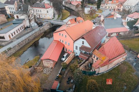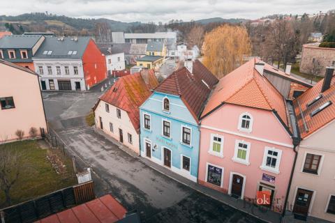 Na prodej dům v centru Tachova s výrazným potenciálem. V přízemí budovy je nebytový prostor (aktuálně provozovaný jako kočičí kavárna) se samostatným využitím – ideální pro kavárnu, kancelář, služby, menší obchod nebo jako jednotka pro pronájem. To vše o celkové užitné ploše 67 m2. Dále je zde chodba a schodiště do bytové jednotky nacházející se v 1. patře, která disponuje celkovou plochou 101 m2. V současné chvíli s dispozicí 2+1. Nad bytem je podkroví vhodné k případné obytné vestavbě. Jak v kavárně, tak i v obývacím pokoji bytu je instalován krb, který zajišťuje dostatek tepla. V kavárně je součástí krbu i výměník. Dům je jinak vytápěn elektrokotlem. Za domem je menší zahrada obklopena kamenným plotem s bránou pro vjezd na pozemek. Výška plotu zaručuje dostatek soukromí. Energetický štítek je v současné chvíli ve výrobě, proto je uváděna enegetická třída G. Hlavní výhody: • centrum města = vše po ruce • kombinace nebytového prostoru + bydlení • možnost dalšího zhodnocení díky podkroví • vhodné pro investora i pro rodinné bydlení s podnikáním Tachov je okresní město v Plzeňském kraji s kompletní občanskou vybaveností a stabilní poptávkou po bydlení i nájemním trhu. Velkou výhodou je také dostupnost na D5 (Plzeň–Praha / Rozvadov–Německo), díky čemuž je lokalita praktická pro dojíždění i podnikání. Navíc je v okolí krásná příroda Českého lesa – ideální pro volný čas.