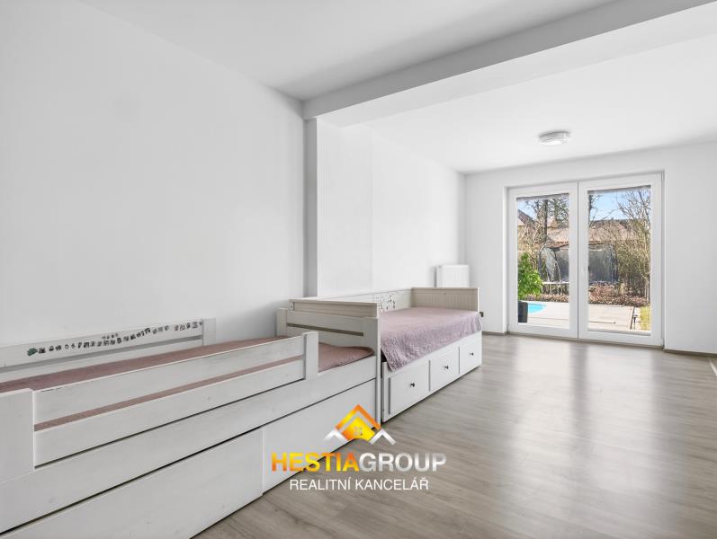 Velkou předností této nemovitosti je rozlehlá, udržovaná zahrada o výměře 1278 m², která poskytuje dostatek prostoru pro odpočinek i aktivní trávení času. Součástí je bazén se slanou vodou o rozměrech 5 × 3 m se zastřešením, ideální pro letní osvěžení i prodloužení koupací sezóny. Nechybí ani pergola s posezením a zázemím, která přímo vybízí k rodinným setkáním či grilování s přáteli.