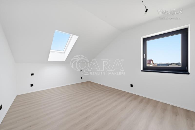 Představuji vám novostavbu rodinného domu v Třebčíně - v místě, kde si každý den užijete klid, dostatek prostoru a zároveň zůstanete jen pár minut od Olomouce. Právě tady si lze snadno představit obyčejné, a přitom krásné chvíle každodenního života. Ráno si vychutnáte kávu na zahradě, děti si budou hrát venku a vy budete mít pocit, že není kam spěchat. Odpoledne přijedete z práce, pohodlně zaparkujete v garáži a během několika kroků jste doma. Večer se pak všichni setkáte v hlavním obytném prostoru, který tvoří skutečné srdce celého domu. Obývací pokoj s kuchyní o velikosti téměř 43 m² nabízí velkorysý prostor pro společné chvíle s rodinou i přáteli. Přirozeně navazuje na zahradu, díky čemuž je propojení vnitřního a venkovního bydlení naprosto samozřejmé. V patře na vás čeká klidová zóna, která nabídne ložnici, dva samostatné pokoje, šatnu a druhou koupelnu. Každý člen rodiny zde najde dostatek soukromí, pohodlí i vlastního prostoru. Dům stojí na pozemku o velikosti 504 m², který poskytuje dostatek místa pro zahradu, odpočinek i rodinné aktivity. Třebčín je ideální volbou pro ty, kteří chtějí bydlet v příjemném a klidném prostředí, ale zároveň mít město na dosah. Do Olomouce se dostanete během několika minut a v okolí najdete vše potřebné pro pohodlný každodenní život. Technické informace: - dispozice 4+kk - užitná plocha cca 124 m² + garáž 19,5 m² - pozemek 504 m², zahrada cca 354 m² - novostavba, kolaudace plánována na rok 2026 - podlahové vytápění a tepelné čerpadlo - příprava na krb a venkovní žaluzie - plastová okna s trojskly - energetická náročnost budovy třídy B - garáž a další parkování na pozemku - veřejná kanalizace a obecní příjezdová komunikace Pokud hledáte místo, které vám nabídne klid, prostor i výbornou dostupnost do města, rád vás tímto domem osobně provedu. Těším se na setkání s vámi.