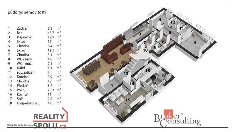 Nabízíme k prodeji víceúčelový rodinný dům, který spojuje možnost bydlení, podnikání i investice. V přízemí domu se nachází plně funkční hospoda s kuchyní a zázemím, na kterou přímo navazuje venkovní posezení, ideální pro letní provoz. Součástí přízemí je také bytová jednotka 1+1, vhodná k bydlení či pronájmu. V 1. patře je situován prostorný byt 4+1 s terasou, který poskytuje dostatek soukromí i komfortu pro rodinné bydlení. V podkroví se nachází byt 1+kk a další dva samostatné pokoje, což otevírá další možnosti využití. Dům je částečně podsklepen a nabízí tak další úložné prostory. Na pozemku se nachází také venkovní přístavek, který lze využít jako dílnu nebo sklad zahradního náčiní a prostorná zahrada vhodná k relaxaci i dalšímu rozvoji. Nemovitost je ideální jako kombinace podnikání a bydlení nebo jako investiční příležitost s možností přestavby na více bytových jednotek. Pokud hledáte nemovitost s variabilním využitím a budoucím potenciálem, tato nabídka stojí za pozornost. Uvedené výměry jsou orientační. V případě více zájemců bude nemovitost prodána nejlepší nabídce a majitel si vyhrazuje právo vybrat kupujícího na základě jim zvolených kritérií. Veškeré zveřejněné údaje obsažené v tomto inzerátu mají pouze informativní charakter a nejsou nabídkou ve smyslu § 1731 nebo § 1732 občanského zákoníku, ani se nejedná o veřejný příslib dle § 1733 občanského zákoníku.