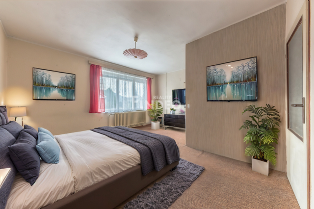 Naše společnost Vám zprostředkuje prodej dvougeneračního rodinného domu na Praze 5, Zbraslavi. Dům se nachází v klidné ulici Boženy Stárkové. Zastavěná plocha domu činí 129 m2. Celková velikost pozemku je 541 m2. Dispozičně je dům je řešen takto: v přízemí se nachází bytová jednotka o dispozici 2+kk, garáž a technické zázemí. Bytová jednotka 2+kk o velikosti 49 m2 prošla před lety dílčí rekonstrukcí – rozvody vody, elektřiny, štuky a výmalba, nové podlahy. Bytová jednotka je orientovaná do ulice. V patře je situovaný prostorný byt 3+1 o velikosti 102,73 m2 (bez terasy), s touto dispozicí – hala, kuchyně, jídelna, obývací pokoj, ložnice, pokoj, šatna, koupelna, toaleta a terasa. Vrchní byt je v původním stavu a bude vyžadovat rekonstrukci. Garáž má přístup z ulice, technické zázemí ze zahrady. Na zahradě se nachází další přístavky, sloužící jako skladové prostory. Terasovitě členěná zahrada nabízí velký potenciál v dalším využití. Dům je napojen na městskou vodu a kanalizaci. Plyn zaveden do domu není, avšak je možné se na něj napojit. Vytápění domu mají obě jednotky na sobě nezávislé. Spodní jednotka disponuje akumulačními kamny. Vrchní byt je vytápěn pomocí elektrokotle. Ohřev TUV je pomocí bojleru. Potenciál domu je zejména v jeho dalším využití – bytový dům s několika byty, zázemí firmy nebo spojení bydlení a podnikání. U některých fotografií byly použity vizualizace, pro představu využití prostoru. Veškerá občanská vybavenost jako škola, školka, potraviny, lékárna, poliklinika, restaurace či další služby, se nachází v pěší dostupnosti od domu. Zastávka BUS MHD se spojením na metro je vzdálena cca 200m od domu. Zbraslavské náměstí je vzdáleno 500 m od domu. Pro případné další informace k domu, nebo jeho prohlídku, napište nebo zavolejte makléři.