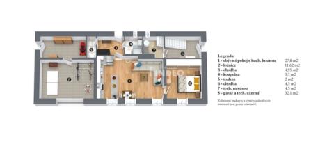 Naše společnost Vám zprostředkuje prodej dvougeneračního rodinného domu na Praze 5, Zbraslavi. Dům se nachází v klidné ulici Boženy Stárkové. Zastavěná plocha domu činí 129 m2. Celková velikost pozemku je 541 m2. Dispozičně je dům je řešen takto: v přízemí se nachází bytová jednotka o dispozici 2+kk, garáž a technické zázemí. Bytová jednotka 2+kk o velikosti 49 m2 prošla před lety dílčí rekonstrukcí – rozvody vody, elektřiny, štuky a výmalba, nové podlahy. Bytová jednotka je orientovaná do ulice. V patře je situovaný prostorný byt 3+1 o velikosti 102,73 m2 (bez terasy), s touto dispozicí – hala, kuchyně, jídelna, obývací pokoj, ložnice, pokoj, šatna, koupelna, toaleta a terasa. Vrchní byt je v původním stavu a bude vyžadovat rekonstrukci. Garáž má přístup z ulice, technické zázemí ze zahrady. Na zahradě se nachází další přístavky, sloužící jako skladové prostory. Terasovitě členěná zahrada nabízí velký potenciál v dalším využití. Dům je napojen na městskou vodu a kanalizaci. Vytápění domu mají obě jednotky na sobě nezávislé. Spodní jednotka disponuje akumulačními kamny. Vrchní byt je vytápěn pomocí elektrokotle. Ohřev TUV je pomocí bojleru. Potenciál domu je zejména v jeho dalším využití – bytový dům s několika byty, zázemí firmy nebo spojení bydlení a podnikání. U některých fotografií byly použity vizualizace, pro představu využití prostoru. Veškerá občanská vybavenost jako škola, školka, potraviny, lékárna, poliklinika, restaurace či další služby, se nachází v pěší dostupnosti od domu. Zastávka BUS MHD se spojením na metro je vzdálena cca 200m od domu. Zbraslavské náměstí je vzdáleno 500 m od domu. Pro případné další informace k domu, nebo jeho prohlídku, napište nebo zavolejte makléři.