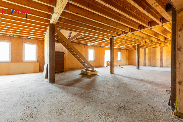 Prodej rozestavěného domu určeného k bydlení s možností přestavby na ubytovací zařízení, penzion či komerční zaměření (projekt k dispozici). Nachází se na adrese Drnovská 12/51, Praha 6 - Ruzyně. Přízemí, postavené v kombinaci kámen a cihla, je 136 m2 velké a garáž pro 3 vozy 56 m2. Zbylá část domu je postavena z prefabrikovaného konstrukčního panelu systémem K-KONTROL, který je velmi efektivní na energickou náročnost. 2.NP má 243 m2 a 3.NP 174 m2. Užitná plocha celkem 665 m2. Velký prostor nabízí několik variant k budoucímu využití, včetně dvora a zahrady. Celková výměra pozemku 671 m2. Možnost nástavby 4.NP!!! V okolí veškerá občanská vybavenost včetně školek, škol, do jednoho kilometru obora Hvězda + Bílá hora. Naproti vznikne soubor nových obchodů a posezení. MHD: bus přímo naproti, 150m vlaková zastávka (bude spojení přímo na letiště), 400m – tramvaj.