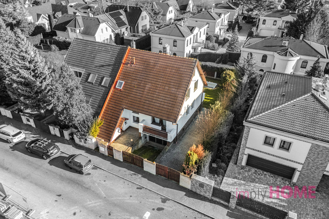 Klidný a prostorný rodinný dúm s dispozicí 5+1 a garáží v osobním vlastnictví, který je situován na pozemku o ploše 468 m2 a disponuje celkovou užitnou plochou 279 m2, se nachází na ulici K Šedivce, ve vilové zástavbě části Prahy 6 – Nebušice. Dům má celkem čtyři podlaží, na kterých nabízí dobře rozvržené místnosti pro rodinné bydlení. V prvním podlaží ( polosuterénu ) o ploše cca 77 m2 se nacházejí skladové prostory, místnost pro technické zázemí domu a garáž. Ze suterénu je přímý vstup na zahradu. Ve druhém podlaží o výměře cca 83,8 m2 se nachází vstupní místnost, chodba, WC, koupelna, kuchyně a obývací pokoj s krbem a vstupem na balkón 5,3 m2 orientovaným do ulice a rovněž vstupem na terasu 9,7 m2 orientovanou do zahrady. Ve třetím podlaží o ploše cca 76,1 m2 je chodba se vstupem do 3 samostatných ložnic, WC a koupelny. Čtvrté podlaží disponuje celkem 42 m2 vestavěného půdního prostoru přístupného z jedné z ložnic ve třetím podlaží. Zahrada o výměře 334 m2 je orientovaná na jihovýchod a nabízí dostatek soukromí i prostoru pro odpočinek. Na zahradě se nachází zapuštěný bazén, který oceníte zejména v letních měsících. Dům je napojen na veškeré inženýrské sítě, vytápění zajišťuje plynový kotel. Nemovitost je ihned obyvatelná, ale nabízí zároveň velký potenciál pro případnou rekonstrukci. Dům se nachází v klidné a prémiové lokalitě vilové zástavby. V docházkové vzdálenosti se nachází International School of Prague, česká mateřská i základní škola, obchody, restaurace, sportovní zařízení i přírodní park Divoká Šárka. Spojení s centrem vlastním vozem je cca 10 minut jízdy nebo městskou dopravou - zastávka autobusu je cca dvě minuty od domu. Ten vás odveze k nejbližší stanici metra Bořislavka do 5 minut.