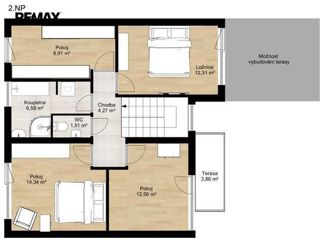 Moderní rodinný dům 6+kk s nízkými provozními náklady a možností vícegeneračního využití, situovaný v klidné rezidenční části Prahy 9 – Vinoř. Dům ze třetí etapy úspěšného developerského projektu Bydlení Vinoř III. nabízí dispoziční řešení pro pohodové rodinné bydlení i variabilní využití pro více generací. Součástí je samostatná bytová jednotka 1+kk s vlastním zázemím, ideální například pro rodiče, hosty či au-pair. Toto řešení zároveň nabízí zajímavý potenciál i pro kombinaci vlastního bydlení, investičního využití nebo podnikání. Moderní stavba splňuje nároky na úsporné bydlení (PENB třída B): - obvodové zdivo Porotherm se zateplením - okna s izolačním trojsklem a venkovní žaluzie - klimatizační jednotky Toshiba (chlazení i vytápění) - fotovoltaika včetně wallboxu - plynový kondenzační kotel Wolf - optický kabel zavedený do domu - vrtaná studna - rovinatý pozemek - zimní zahrada pro celoroční využití - krbová kamna - udržovaná zahrada s automatický závlahovým systémem - retenční nádrže pro využití dešťové vody - kryté parkovací stání s vyhříváním Energetická efektivita domu (PENB třída B) v kombinaci s fotovoltaickou elektrárnou a klimatizačními jednotkami s funkcí chlazení/vytápění přispívá k optimalizaci provozních nákladů. Dům je rozložen do dvou podlaží propojených betonovým schodištěm s dřevěnými stupni. V 1. NP se nachází vstupní chodba, obývací pokoj s kuchyňským koutem a výstupem do zimní zahrady, samostatná toaleta a byt 1+kk s vlastním vstupem a koupelnou. K dispozici je také praktický skladovací prostor pro technologie domu a sezónní vybavení. Ve 2. NP jsou tři ložnice, šatna (případně pracovna), koupelna s vanou, sprchovým koutem a samostatná toaleta. Z jedné ložnice je vstup na terasu, u druhé je možnost vybudování další terasy. Podrobné informace o dispozici naleznete v přiložených půdorysech. Komfort bydlení doplňuje vjezd na pozemek přes elektricky ovládaná vrata a elegantní kryté parkovací stání s vyhříváním. Vinoř nabízí klidné bydlení s výbornou dostupností do centra Prahy a zároveň si zachovává příjemný rezidenční charakter. Vinořský park, vyhlášený jako přírodní rezervace, je ideálním místem pro procházky i aktivní odpočinek. V okolí je golfový areál Prague City Golf Vinoř s 18jamkovým hřištěm, klubovou restaurací s mezinárodní kuchyní. Nákupní možnosti oceníte v nedalekém obchodním centrum Černý Most, vč. moderních kinosálů. Nechybí kompletní občanská vybavenost včetně škol a školek. Autobusová zastávka v pěší vzdálenosti zajišťuje spojení na metro i do centra města. Výborné je také napojení na městský okruh, které umožňuje rychlou dostupnost napříč Prahou i mimo ni. Možnost financování hypotečním úvěrem, s jehož zajištěním Vám velmi rádi pomohou naši finanční specialisté. Neváhejte si zarezervovat termín prohlídky – rád Vás osobně provedu touto nemovitostí a představím Vám všechny její přednosti. Prodávající si vyhrazuje právo vybrat kupujícího na základě jím zvolených kritérií.