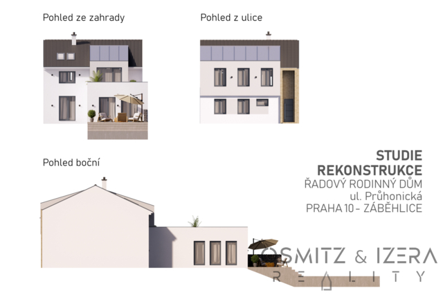 Řadový rodinný dům v klidné lokalitě Prahy 10 (Trnkov). Úžasná klidná lokalita, kterou skoro nikdo nezná. Hned vedle Zahradního Města. Neprůjezdná pouze s minimem aut místních rezidentů. Rodinný dům o dispozici 4+1 má užitnou plochou cca 120 m2. Dům je částečně podsklepený. V podkrovní části je mimo dvou pokojů ještě půda. V přízemí jsou potom dva obytné pokoje, kuchyně a koupelna s WC. Chodbou se potom prochází domem na zahradu. Před domem se nachází malá předzahrádka o ploše cca 36 m² a za domem se rozprostírá velká zahrada s výměrou 327 m², která je dobře přístupná a nabízí příjemné místo pro relaxaci. Na zahradě je také garáž pro jeden automobil a menší zděná kůlna. Celková plocha pozemku činí 449 m², přičemž zastavěná plocha je zhruba 86 m². Podélný tvar zahrady a její orientace zaručuje téměř celodenní sluneční svit, což je ideální pro zahradničení, rodinné aktivity nebo třeba wellness zónu. Zahrada a garáž je přístupná i ze zadní části po asfaltové komunikaci což je veliký benefit. Městskou čtvrť Trnkov tvoří pouze několik ulic, což zajišťuje klidné prostředí s minimálním dopravním provozem téměř výhradně jen místních rezidentů. Je to skvělé místo pro bydlení, kde si můžete užívat soukromí a pohodlí. Dům byl doposud užíván, má zavedenou elektřinu, přípojku plynu, vodovod a kanalizaci. Na zahradě se navíc nachází původní studna, což představuje další benefit pro budoucí majitele. I když je dům v původním stavu a vyžaduje kompletní rekonstrukci, představuje skvělou investiční příležitost s možností přestavby, zvětšení podkroví a rozšíření do zahrady, což tuto nemovitost činí atraktivní nejen pro rodiny hledající prostor. Také garáž v zadní části zahrady se nabízí pro zvětšení pro 2 automobily a další zahradní zázemí. Okolní sousední domy již prošly úspěšnou rekonstrukcí, což ukazuje na potenciál v této lokalitě. Zobrazená studie rekonstrukce domu naznačuje jednu z možností přestavby tohoto domu. Doporučujeme prohlídku tohoto hezkého domu za atraktivní cenu. Nabízí se zde získání krásného rodinného zázemí ve velice klidné lokalitě zaručující dostatek soukromí. A při tom perfektní dostupnost města na rozhraní Prahy 4 a Prahy 10. Rádi vám dům osobně představíme. Na prohlídku se těší Alexandra a Marek