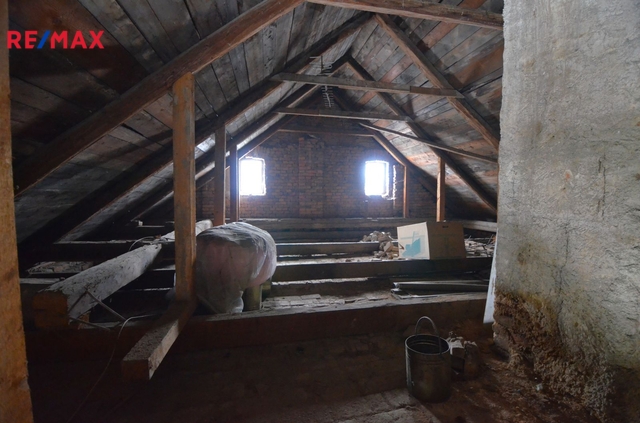 V přízemí se nachází obývací pokoj s navazujícími ložnicemi, kuchyně s pracovnou, koupelna s vanou a sprchovým koutem a technická místnost. V patře najdete další pokoj, druhou koupelnu a prostornou půdu, která skýtá možnost vybudování dalších obytných místností. Dům prošel dílčími rekonstrukcemi – plastová okna, střecha, omítky a modernizované vytápění.